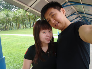 Hubby took a photo of me with my messy hair while I was waiting for bus. SO UNGLAM! Both of us taking a picture at the bus stop.
